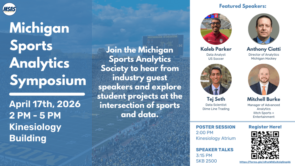 Join us for the Michigan Sports Analytics Symposium on Friday, April 17th.